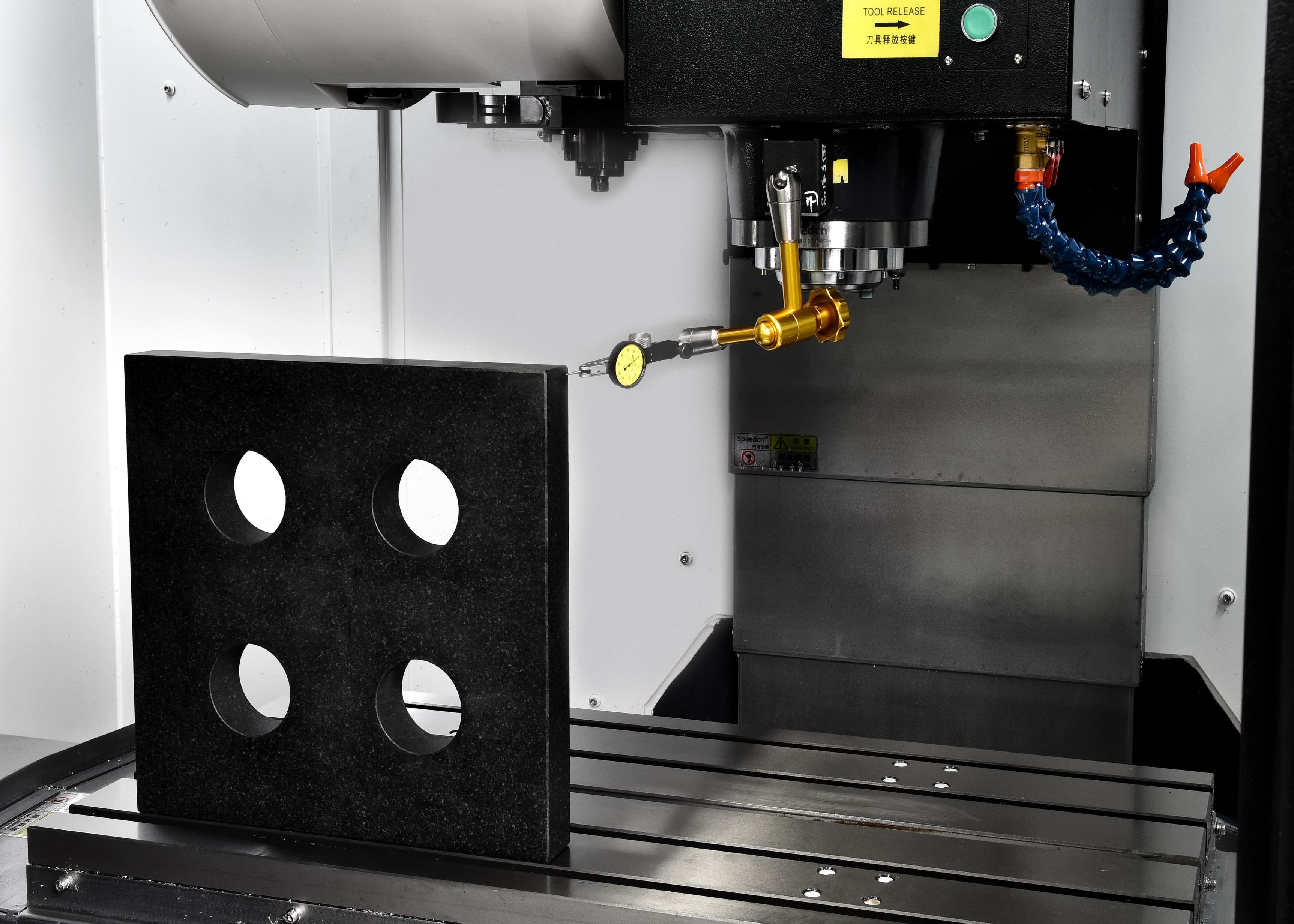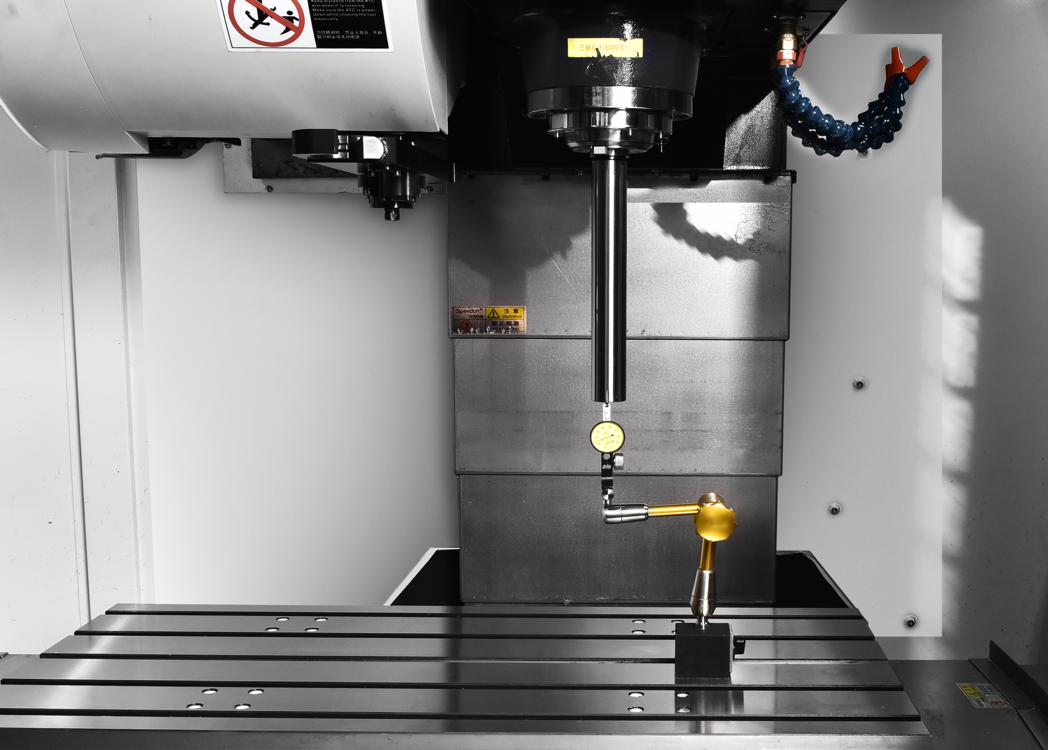 出廠前進(jìn)行主軸跳動(dòng)檢測(cè),使機(jī)床品質(zhì)可接受實(shí)際加工考驗(yàn)。